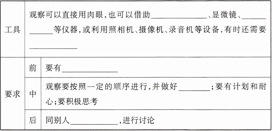 放大镜 望远镜 测量 明确的目的 记录 交流看法