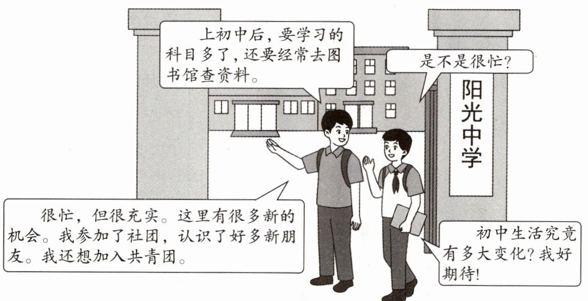 (1) 说一说:结合上初中后的经历,思考初中生活和小学生活有什么不一样。