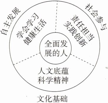 15. 学生发展核心素养指学生应具备的,能够适应终身发展和社会发展需要的必备品格和关键能力,综合表现为六大素养(见右图)。其中“科学精神”主要是学生在学习、理解、运用科学知识和技能等方面所形成的价值标准、思维方式和行为表现。具体包括理性思维、批判质疑、勇于探究等基本要点。