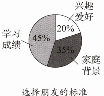 (1)①大多数同学在选择朋友时,比较看重学习成绩和家庭背景这两个因素,这种交友标准是不值得提倡的。②友谊是一种心灵的相遇。友谊的美好就在于它可以超越物质条件、家庭背景、学业成绩等,实现心灵的沟通与契合。志趣相投、志同道合的友谊,更能够经得住时间的考验和风雨的洗礼。