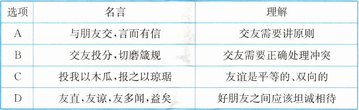 D.交友需要学会尊重对方,学会处理朋友之间的矛盾和冲突