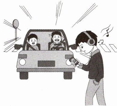 2. 观察漫画《过马路》,你认为应对漫画中戴耳机听音乐过马路的男孩说( )