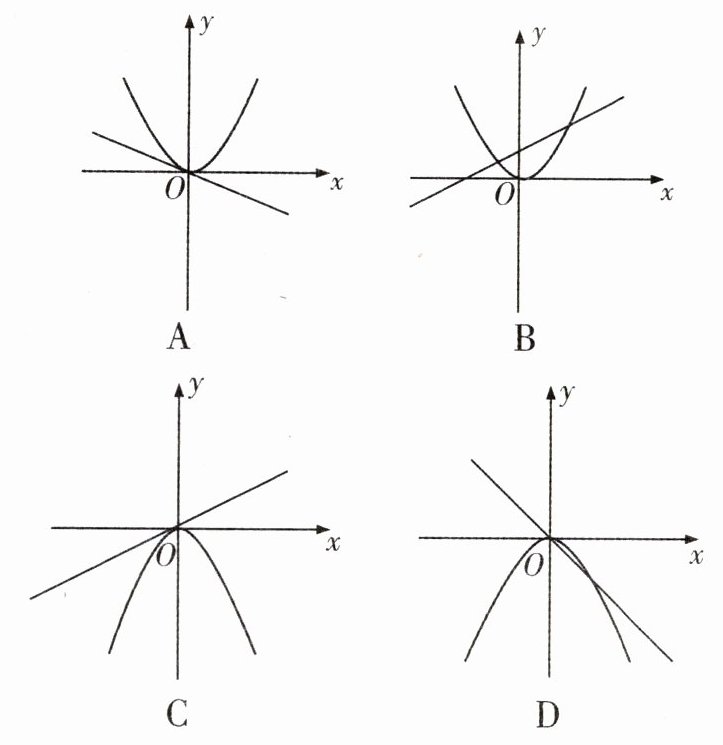 1. 在同一直角坐标系中,函数 $ y = kx $ 和 $ y = kx^{2} $($ k \neq 0 $)的图象大致是(