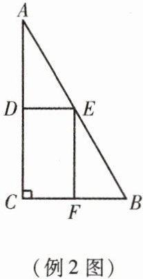 例2 一块三角形废料如图所示,$ ∠A = 30° $,$ ∠C = 90° $,$ AB = 12 $. 用这块废料剪出一个长方形 $ CDEF $,其中,点 $ D $,$ E $,$ F $ 分别在 $ AC $,$ AB $,$ BC $ 上. 要使剪出的长方形 $ CDEF $ 面积最大,点 $ E $ 应选在何处?