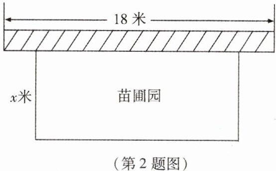 2. 某中学课外活动小组准备围建一个矩形生物苗圃园. 其中一边靠墙,另外三边用长为 30 米的篱笆围成. 已知墙长为 18 米(如图所示),设这个苗圃园垂直于墙的一边的长为 $ x $ 米.