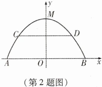2. 如图,有一抛物线拱桥,已知水位线在 $ AB $ 位置时,水面的宽为 $ 4\sqrt{6} $ 米,水位上升 $ 4 $ 米,就达到警戒线 $ CD $,这时水面宽为 $ 4\sqrt{3} $ 米. 若洪水到来时,水位以 $ 0.5 $ 米/时的速度上升,则水过警戒线后