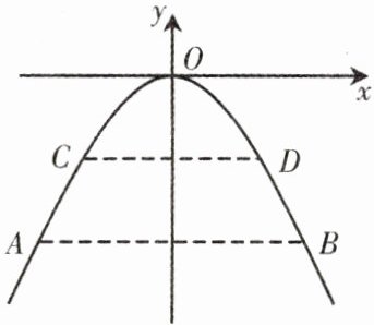 例 一个涵洞成抛物线形,它的截面如图所示. 现测得:当水面宽 $ AB = 18 $ m 时,涵洞顶点与水面的距离为 $ 9 $ m. 当水面宽 $ CD = 6 $ m 时,水位上升了多少?