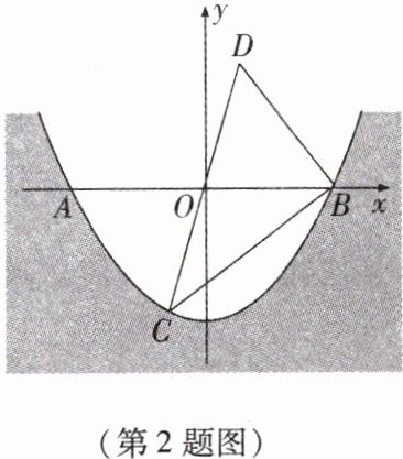 2. 某水渠的横截面呈抛物线形,水面的宽为 $ AB $(单位:m). 现以 $ AB $ 所在直线为 $ x $ 轴,以抛物线的对称轴为 $ y $ 轴建立如图所示的平面直角坐标系. 已知 $ AB = 8 $ m,设抛物线的解析式为 $ y = ax^{2} - 4 $.
