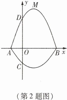 2. 如图,在平面直角坐标系 $ xOy $ 中,$ A $,$ B $ 为 $ x $ 轴上的两点,$ C $,$ D $ 为 $ y $ 轴上的两点,经过点 $ A $,$ C $,$ B $ 的抛物线的一部分 $ C_{1} $ 与经过点 $ A $,$ D $,$ B $ 的抛物线的一部分 $ C_{2} $ 组合成一条封闭曲线,我们把这条封闭曲线称为“蛋线”. 已知点 $ C $ 的坐标为 $ (0, -\frac{3}{2}) $,点 $ M $ 是抛物线 $ C_{2}: y = mx^{2} - 2mx - 3m (m < 0) $ 的顶点.