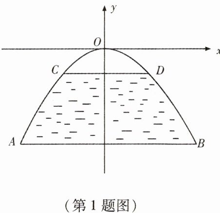 1. 如图,有一座抛物线形拱桥,在正常水位时水面 $ AB $ 的宽为 $ 20 $ m,当水位上升 $ 3 $ m 时,水面 $ CD $ 的宽是 $ 10 $ m.