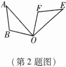 2. 如图,△OAB绕点O按顺时针方向旋转得到△OEF,在这个旋转过程中,找出图中相等的角和相等的线段.