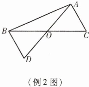 例2 如图,AO是△ABC的中线,延长AO到D使DO= AO,连接BD. 问:图中是否存在着图形的某种对称关系?如果有,指出是哪些图形之间成何种对称,并说明理由.