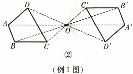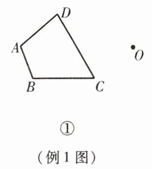例1 如图①,已知四边形ABCD和点O,画四边形A'B'C'D',使四边形A'B'C'D'和四边形ABCD关于点O成中心对称.