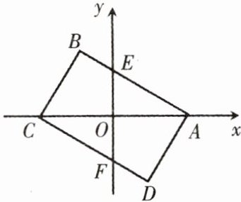 矩形 $ ABCD $ 在直角坐标系中的位置如图所示,$ AB $,$ CD $ 与 $ y $ 轴的交点分别为 $ E $,$ F $,点 $ O $ 是矩形对角线的交点,$ AB = 8 $,$ BC = 6 $. 求矩形顶点 $ A $,$ B $,$ C $,$ D $ 和 $ E $,$ F $ 的坐标.