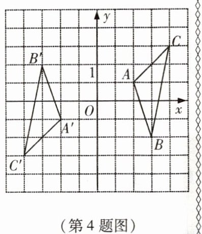 4. 如图,$ \triangle ABC $ 绕原点 $ O $ 旋转 $ 180^{\circ} $ 之后,得到 $ \triangle A'B'C' $. 原三角形三个顶点的坐标有什么变化呢?