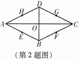2. 如图,菱形$ABCD$中,对角线$AC和BD相交于点O$;$E$,$F$,$G$,$H分别是边AB$,$BC$,$CD$,$DA$的中点. 求证:$E$,$F$,$G$,$H四点在以O$为圆心的同一圆上.