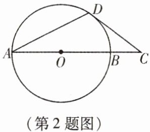 2. 如图,AB是$\odot O$的直径,点C在AB的延长线上,CD与$\odot O$相切于点D,连接AD,若$\angle A = 28^{\circ},$则$\angle C = $