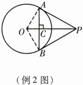 - 例2 如图,PA,PB切⊙O于A,B,⊙O的半径是√3,∠APB = 60°,求PO,PA,AB及OC的长.