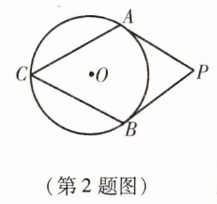 - 2. 如图,PA,PB分别切⊙O于A,B,∠P = 70°,则∠C等于(