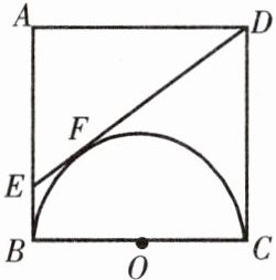 - 如图,以正方形ABCD的边BC为直径作半圆O,过点D作直线切半圆于点F,交AB边于点E,求△ADE和直角梯形EBCD的周长之比.