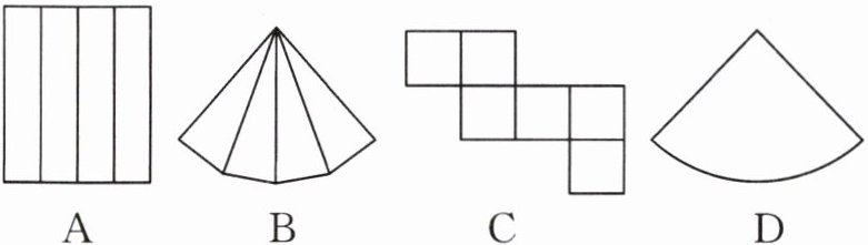 8. 下列图形中,是圆锥的侧面展开图的是 (