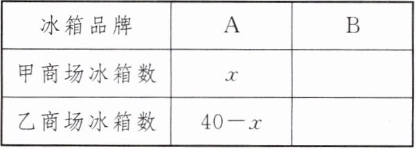(1)请根据题意补全A,B品牌冰箱调配情况的表格(单位:台):