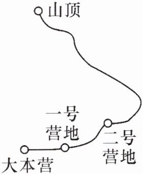 4. 如图,甲、乙两支登山队沿同一条路线同时向山顶进发,甲队从距大本营1km的一号营地出发,每小时行进1.2km;乙队从距大本营3km的二号营地出发,每小时行进0.8km。多长时间后,甲队在途中追上乙队?