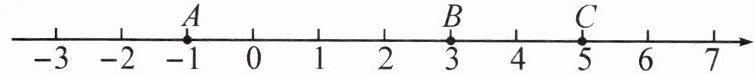 2. 如图,已知数轴上 A,B,C 三点对应的数分别为 -1,3,5,P 为数轴上任意一点,其对应的数为 $ x $. 点 A 与点 P 之间的距离表示为 AP,点 B 与点 P 之间的距离表示为 BP.