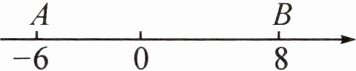 【例】如图,在数轴上,点 A 表示的数为 -6,点 B 表示的数为 8,动点 P 从点 A 出发,以每秒 2 个单位长度的速度沿射线 AB 的方向运动,运动时间为 $ t(t>0) $ 秒.