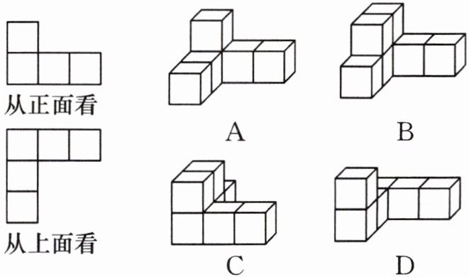 15. 小明用几个大小相同的小正方体搭成一个几何体,并画出“从正面和上面看到的这个几何体的形状图”来描述它的特征(如图).同学们仅依据小明的描述搭出四个几何体,其中不符合小明描述的是 (
