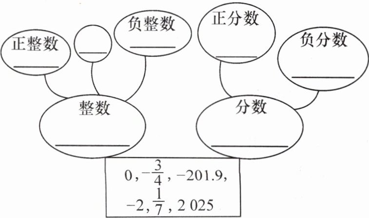 10. 如图,这是数学果园里的一棵“有理数”知识树,请仔细辨别分类,把各类数填在它相应的横线上.