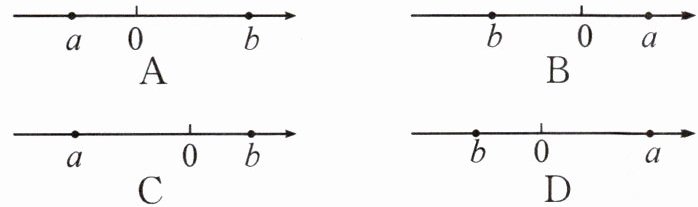 14. 已知$a$,$b$是不为0的有理数,且$|a|= -a$,$|b|= b$,$|a| > |b|$,那么用数轴上的点来表示$a$,$b$时,正确的是(