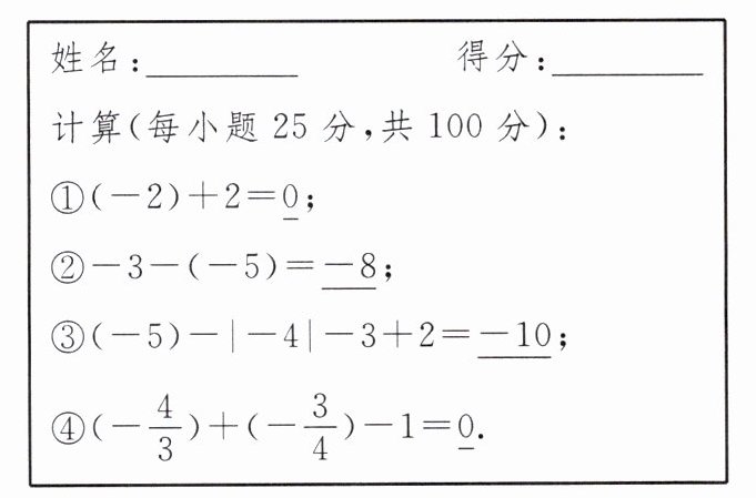4. 如图所示的是某同学完成的作业,他的得分是(