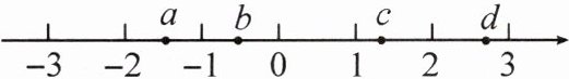 9. 有理数 $a$,$b$,$c$,$d$ 在数轴上的对应点的位置如图所示,则 $a× b× c$