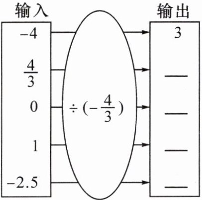 8. (教材P56习题T6变式)将输入的数分别除以$-\dfrac{4}{3}$,请在横线上写出输出的数.