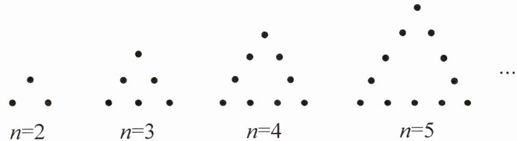 9. 如图,一些点组成形如三角形的图形。如果图形的每条“边”上有n(n>1)个点(包括两个顶点),那么当这个图形中点的总数S= 2025时,n=