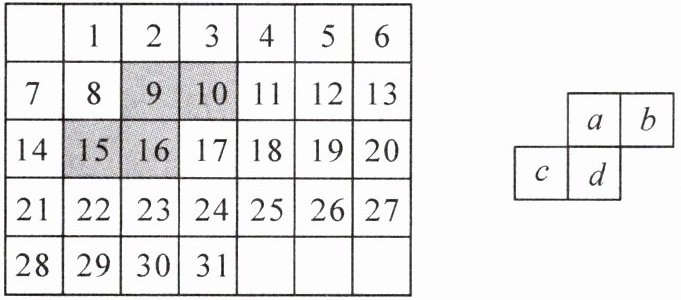 1. 如图,这是某月的月历,用带阴影的方框恰好框住四个数。若这样的阴影方框可以任意移动,且框住这张月历表中的4个数,设a表示的数是x,则这4个数的和为