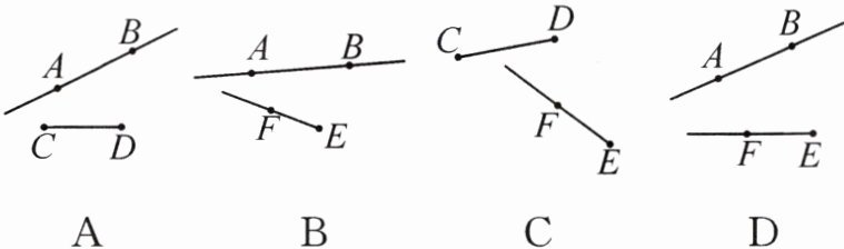 13. 直线AB、线段CD、射线EF的位置如图所示,则其中不可能相交的是 (