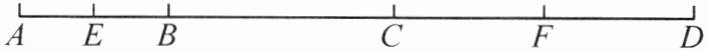 16. 如图,已知 $ AB:BC:CD = 2:3:4 $,$ E $,$ F $ 分别为线段 $ AB $,$ CD $ 的中点,且 $ EF = 15 $,求线段 $ AD $ 的长。