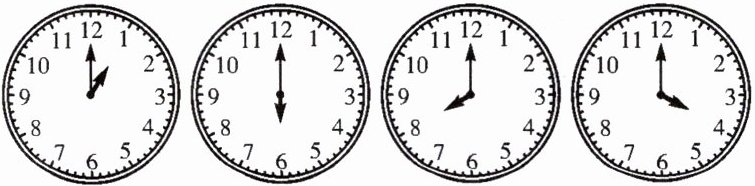 9. 如图,分别写出四个钟表上的时针与分针所成的较小角的度数.