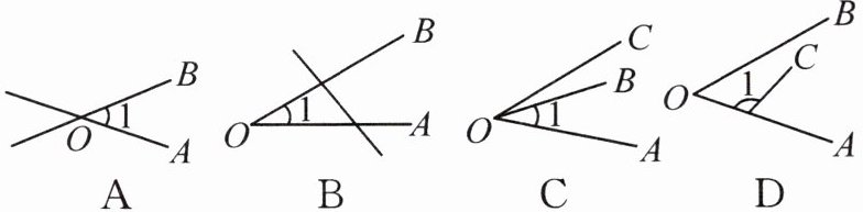 2. 下列图形中,能用∠1,∠AOB,∠O三种方法表示同一个角的图形是 (