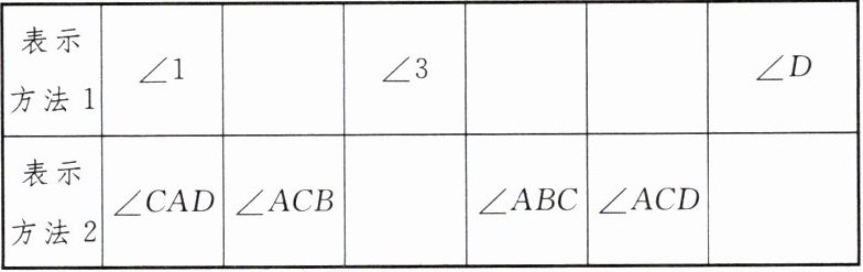 4. 根据图中信息填写下表,将表中的角用其他方法表示出来.