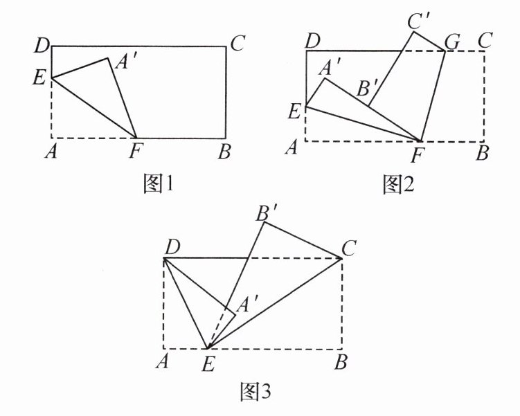 (2)希望小组受此问题的启发,将长方形纸片按图2所示的方式折叠,$EF$,$FG$为折痕,点$A'$,$B'$,$F$恰好在同一条直线上,求$\angle EFG$的度数.