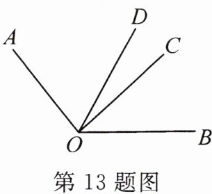 13. 如图,$OD是\angle AOB$的平分线,$\angle AOC= 2\angle BOC$,$\angle COD= 21^{\circ}20'$,则$\angle AOB$的度数为