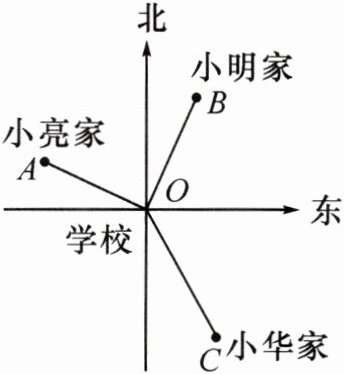 12. 如图,点A,B,C,O分别表示小亮家、小明家、小华家、学校的位置.点A位于点O的北偏西$65^{\circ}$方向上,点B位于点O的北偏东$25^{\circ}$方向上.