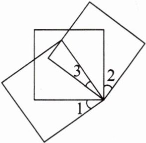 11. 如图所示,将三个大小相同的正方形的一个顶点重合放置,则$\angle 1$,$\angle 2$,$\angle 3$三个角的数量关系为(