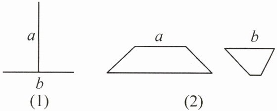 2. 如图,比较线段 $a$,$b$ 的长短,再用刻度尺量一下,看看你的观察结果是否正确.