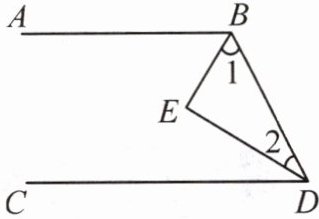 13. 如图,已知$BE平分∠ABD$,$DE平分∠CDB$,且$∠1与∠2$互余。求证:$AB// CD$。
