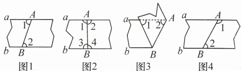 B.如图2,展开后测得$∠1= ∠2$,$∠3= ∠4$