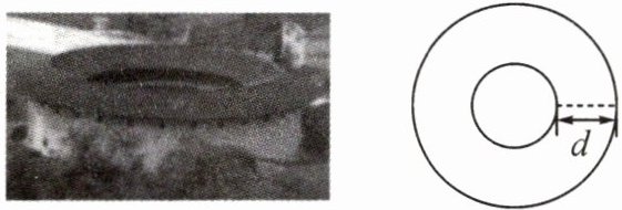 16. 如图,这是某土楼的平面示意图,它由两个相同圆心的圆构成.已知大圆和小圆的面积分别为$763.02m^2和150.72m^2$,求圆环的宽度$d$($\pi取3.14$).